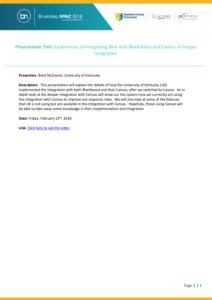 By Yeona|2018-03-02T03:21:56-05:00March 2nd, 2018|Comments Off on (Bluenotes APAC 2018) Experiences of Integrating Blue with Blackboard and Canvas – A Deeper Integration, University of Kentucky