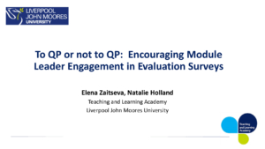 (Bluenotes Europe 2018) To QP or not to QP: Encouraging Module Leader Engagement in Evaluation Surveys, Liverpool John Moores University