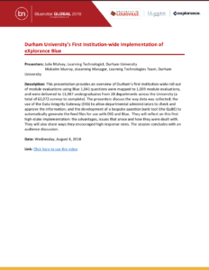 (Bluenotes Global 2018) Durham University’s First Institution-wide Implementation of eXplorance Blue, Durham University