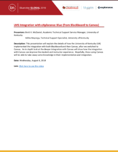 (Bluenotes Global 2018) LMS Integration with eXplorance Blue (from Blackboard to Canvas), University of Kentucky